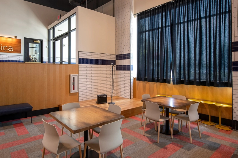 Parking is free and easy. Guests can use the parking garage, nearby surface lot, or street parking throughout the district. This convenience makes Van Aken a great choice for corporate meeting venues and social events alike.